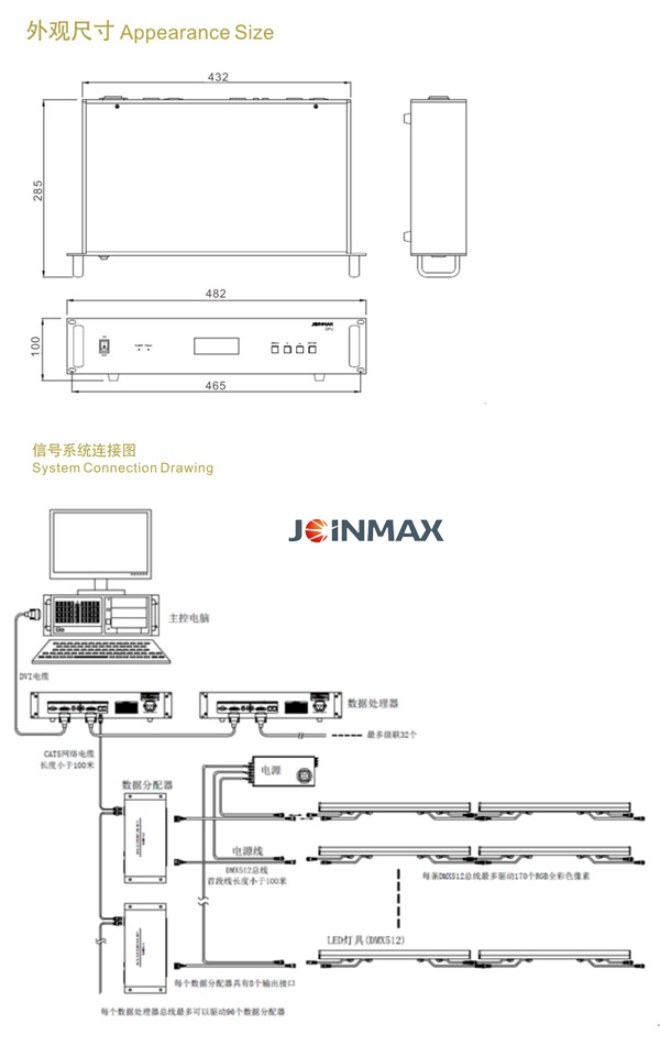 1.DVI signal transferred to Joinmax network data, providing data signal source for lighting system.